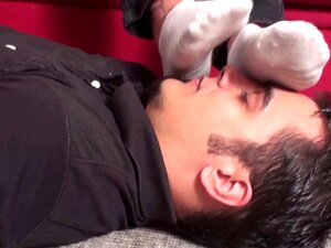 NylonFeetVideos Video: Florence A and Nicholas, Florence A is lying on the bed with her sexy slim gams clad in sleek dark pantyhose, so Nicholas uses his lucky chance to get a rousing legjob and worship her slender nyloned feet. He sniffs and licks them be